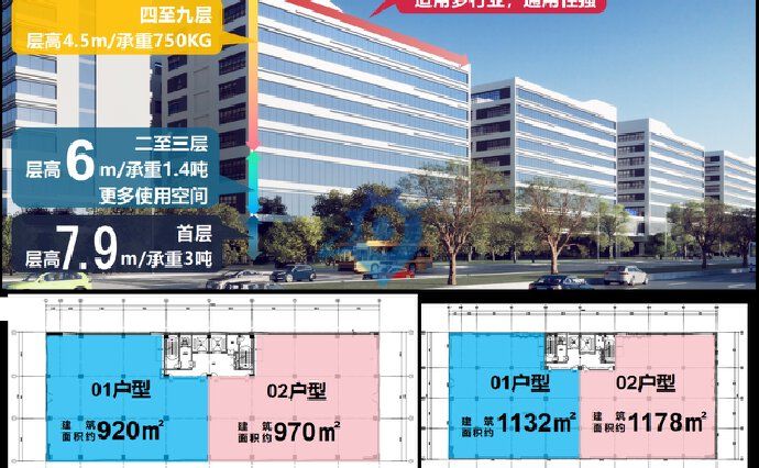 销售型 · 工业4.0厂房 50年产权红本厂房 高层:920-1132-1890-2496㎡高标配置独栋:3000-6500㎡ 宽柱距|带装修|可分可合|龙头产业基地领航 中国民营500强企业|专业产业园区运营商 |增城国家级经济开发区核心 交通便捷|广汕高铁-增城站 坐拥穗莞深惠四城门户枢纽,占大湾区穗莞深科技创新产业业发展走廊关键节点。建筑面积】约36万㎡【配套面积】约2万㎡【土地性质】M1工业用地,50年红本产权,产权分割出售,每层一到两户,一户一证 高层产品 【高层户型】约920-1132-1890-2600㎡等【厂房层高】首层7.9米,2~3层6米,4~9层4.5米【厂房承重】首层3吨/㎡,2~3层1.4吨/㎡,4~9层0.75吨/㎡【厂房柱距】9m×9m 9mx10m 9mx8m【电梯配置】5T货梯,3T货梯,1T客梯【在售楼栋】5、6、7、8号楼有意向私聊了解详情!
