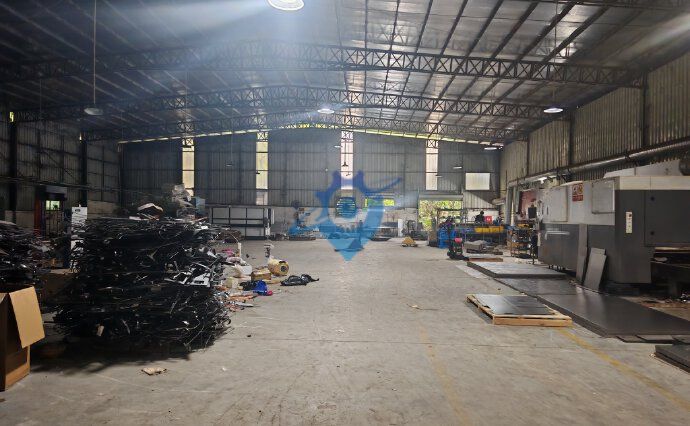 原房东独栋钢结构单一层厂房出租1200平方,车间面积1000平方水电齐全,滴水8米结构方正,独立宿舍办公楼四层200平方,一楼办公室饭堂共100平方,2楼宿舍3层共100平方,独立变压器200kva,厂房周边无居民适合24小时生产加工,工业用地可办环评,原房东实际面际出租无公摊面积,院子空地水泥硬化约500平方免费用,货柜车进出上下货方便,适合多种行业入住,欢迎来电咨询详情。